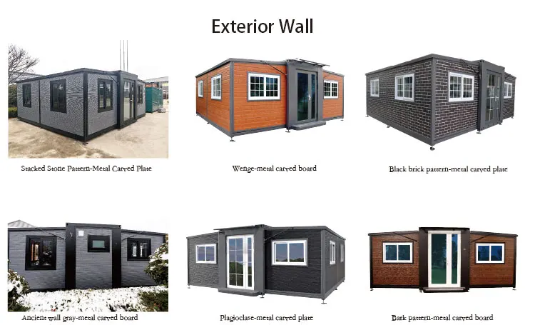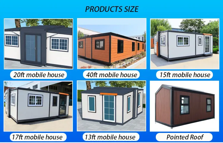 The exterior of mobile houses varies in style—common designs include container-style, sloped-roof, apple cabin shape, and foldable structures. Wall materials include metal panels, wood-grain boards, and insulated sandwich panels, offering excellent weather resistance, insulation, and durability. The structure is strong enough to withstand harsh weather and supports crane lifting and transportation.