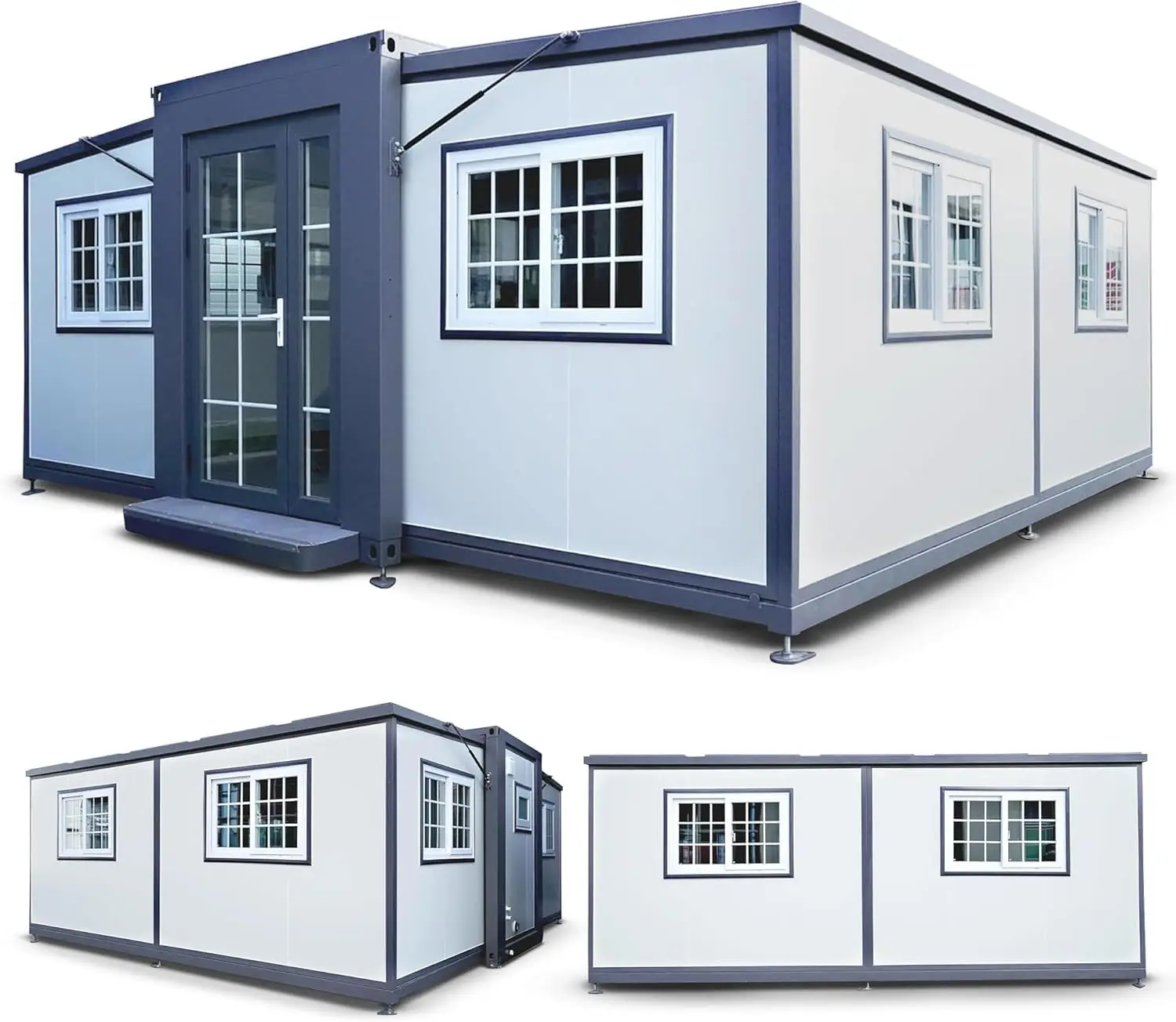20f Folding Pack Container House: Complete with Bathroom, Kitchen, Covered Porch, and Double Wing Expansion