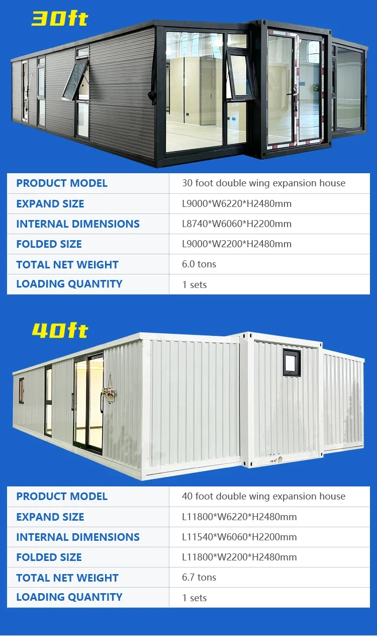 40ft Mobile Folding Houses, 20ft Modular Prefabricated Houses and Customizable Container Houses with 1-4 Bedrooms and Furniture